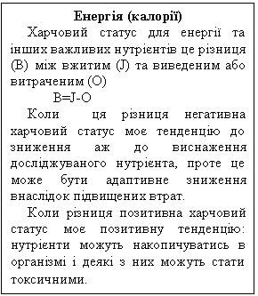 До оцінки дійсної зміни маси або коли масу не можна виміряти, приблизний рівень енергетичного балансу можна одержати, вирахувавши за меню калорійність вжитої за день їжі і порівнявши цю величину з рекомендованою даною кількістю, опублікованою DHSS.